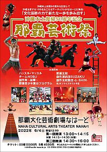 2022.06.07 【2022年6月4日】沖縄本土復帰50周年記念 那覇芸術祭 6月4日(土)に那覇文化芸術劇場なはーとにて、沖縄本土復帰50周年記念 那覇芸術祭を開催しました。 ※公演の詳細内容(公演開催時の告知ページ)はこちらからご覧頂けます。 【2021年11月27日】ハッスル... 【2022年02月12・13日】ハ...